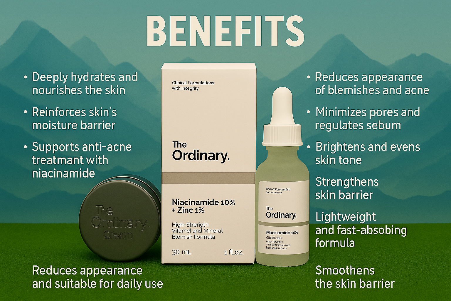 ✔️ Niacinamide 10% + Zinc 1% Serum minimizes pores, reduces acne, and controls sebum